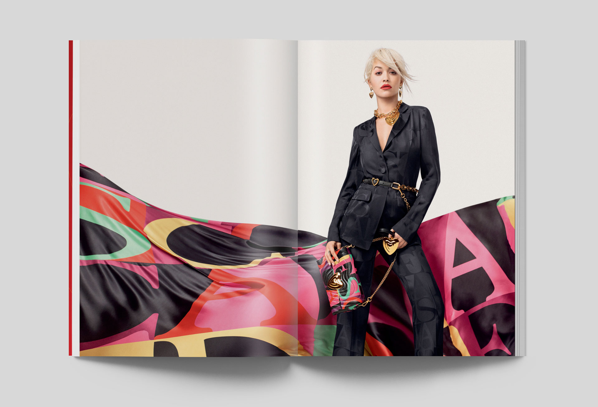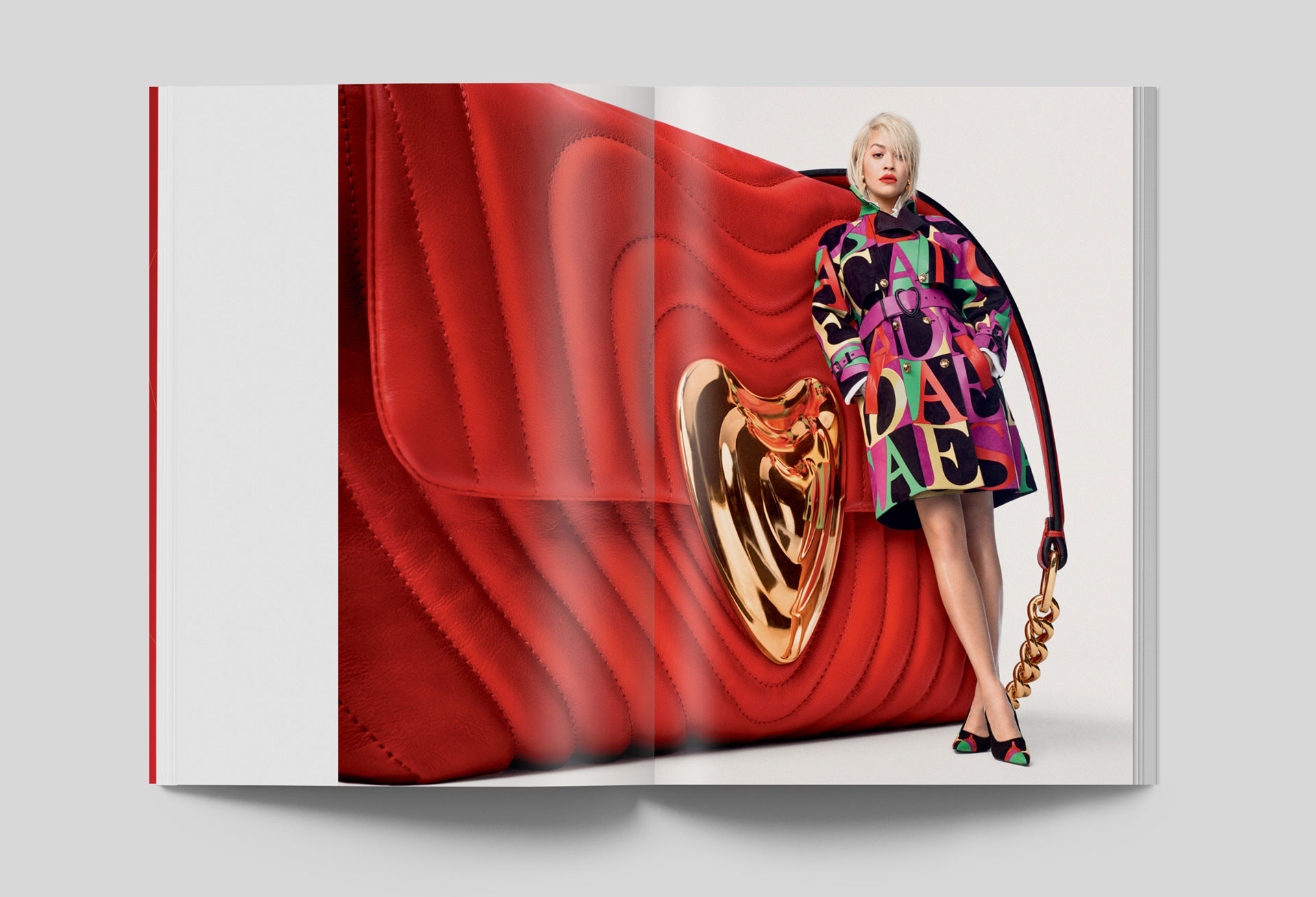 – Color balance: Rita Ora’s strong reds were anchored by neutral earth tones across the surrounding spreads.